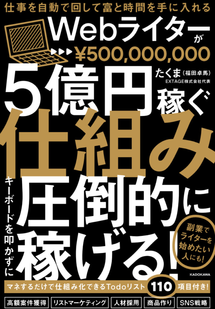 KADOKAWA『Webライターが5億円稼ぐ仕組み』著者。