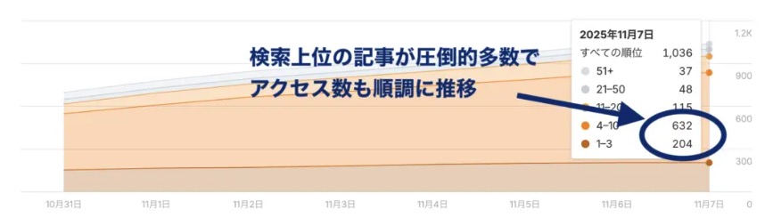 - 検索上位獲得率:わずか14%(大半の記事が検索結果の2ページ目以降に埋もれている状態)