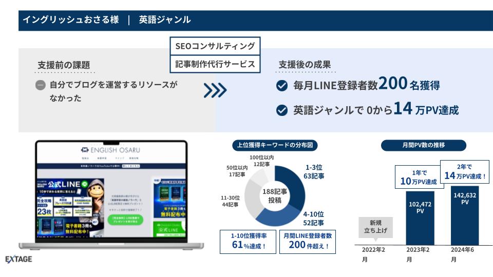 EXTAGE株式会社でも、SEOコンサルの一環でブログ代行サービスを提供しております。