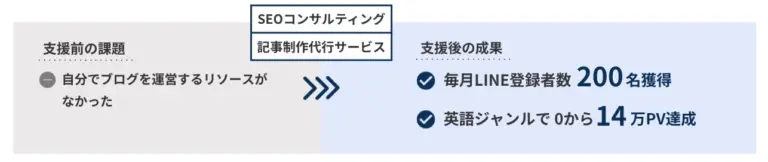 このように、SEO施策を交えたブログ代行を活用すれば、記事制作にとどまらず、LINE登録者数の増加や売上アップといった成果につなげることができます。