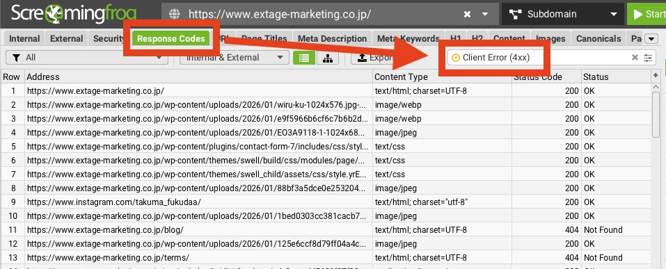 修正したら、再度ツールでクロールして、該当URLにエラーが生じていないかを確認しましょう。