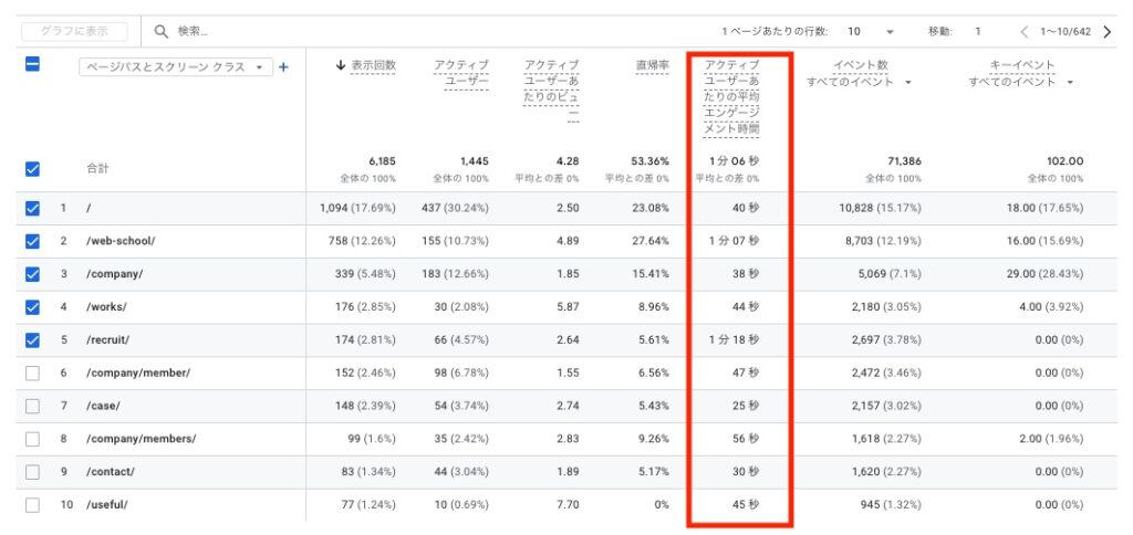 GA4で直帰率・滞在時間の悪いページを抽出する