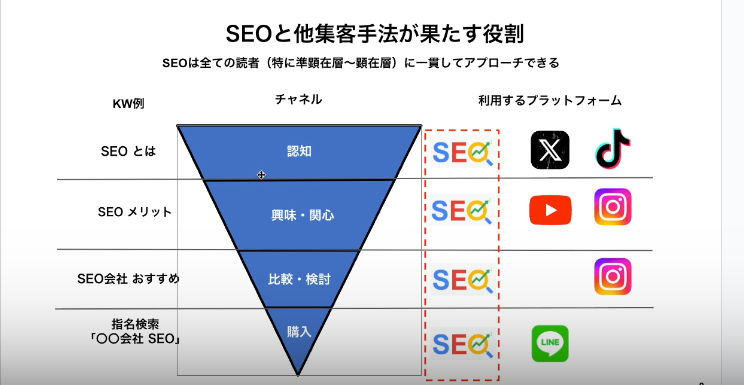 また、記事の内容や内部リンクを工夫すれば、検索で訪れた顕在層を潜在層向けコンテンツへ誘導することも可能です。
