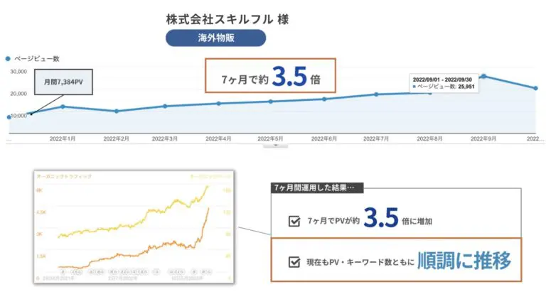 以下の施策を実践した結果、わずか7か月でPVが3.5倍に成長し、自社商品の売上アップを実現しました。