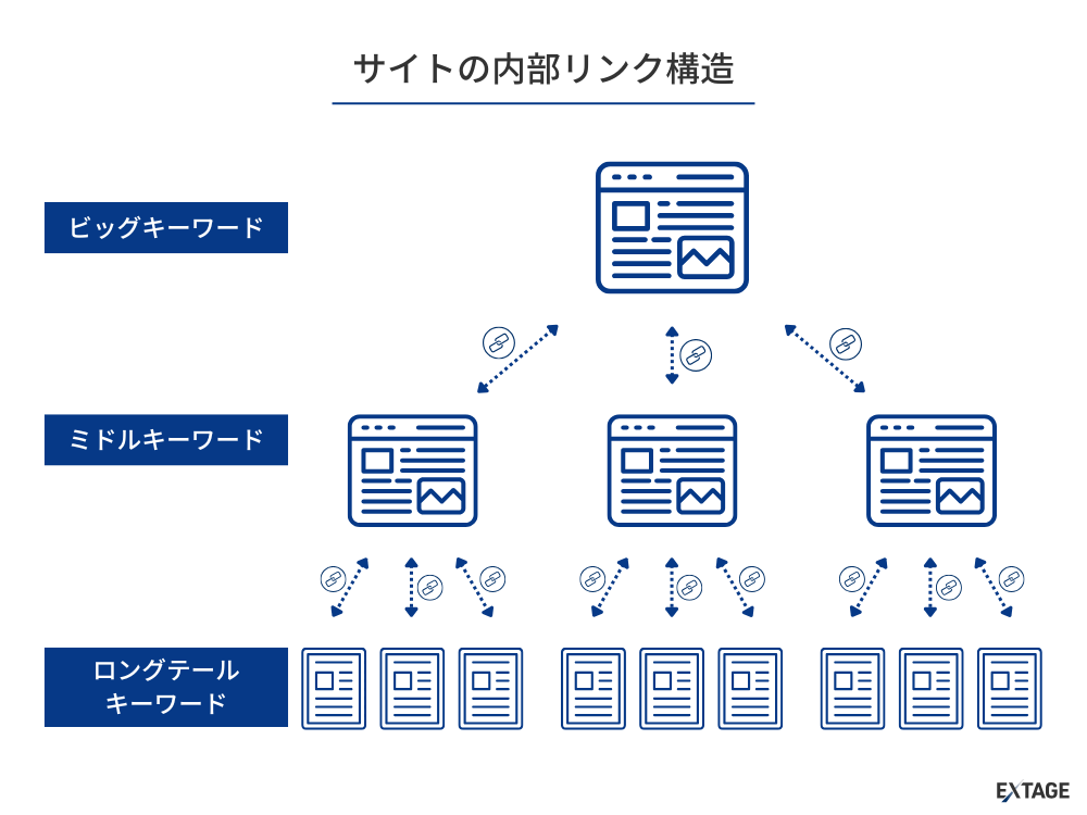 「〇〇 課題」といった認知段階のキーワードから「〇〇 比較」「〇〇 事例」といった検討段階のキーワードまで、顧客をゴールまで導くようにコンテンツを配置しましょう。
