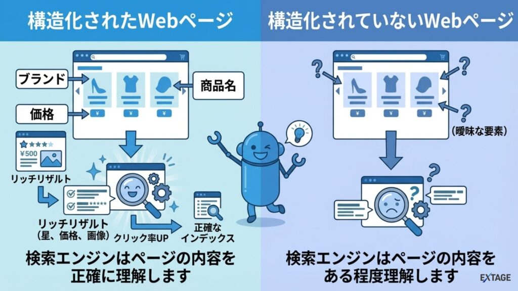 構造化データとは、Webページの内容を検索エンジンが理解できるように、特定の意味を持つ情報をタグ付けする記述方法のことです。